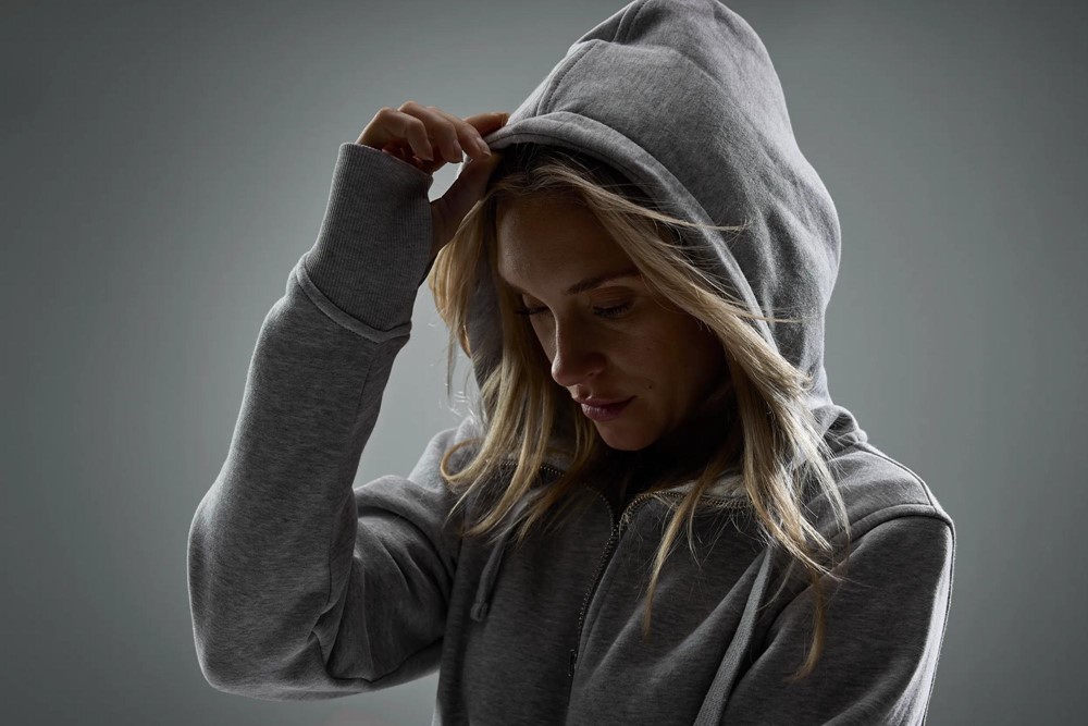 shape without limiting movement. The hood and the high collar are double-layered with a chunky feel, adding extra warmth. It’s designed with two side pockets, a hidden zip pocket in the right-side seam, and thumb holes at the cuffs. Certified according to OEKO-TEX® Standard 100.