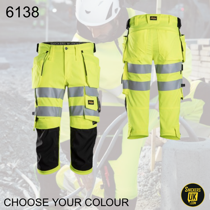 Snickers 6138 High Vis 1/2 Stretch Holster Pocket 3/4 Pirate Trousers