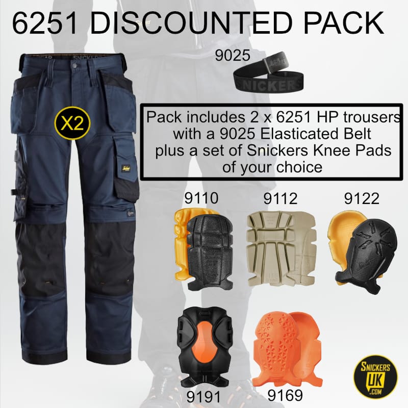 Snickers 6251 Twin Pack – Stretch Trousers with Belt & Kneepads | Built for Comfort, Designed to Last