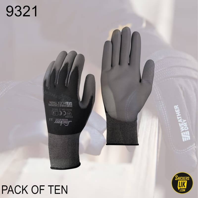 Extra thin and tight. Seamless work gloves with extra fingertip feeling for precision work. Palm coated with Polyurethane for a secure grip. EN 388.