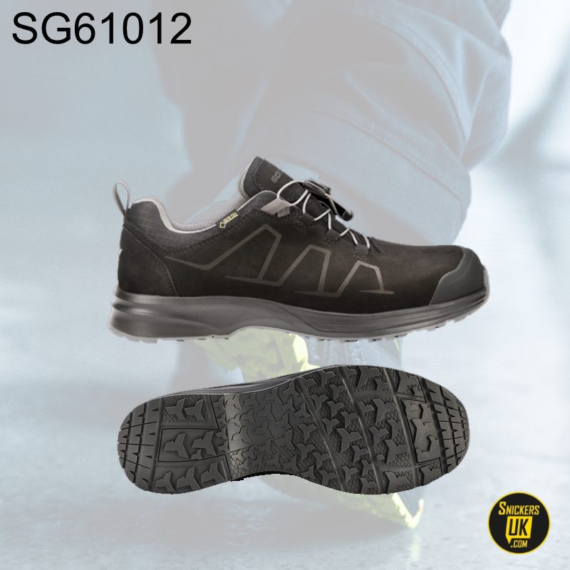 Talus GTX Low is a discreet lowcut shoe, but still stacked with a number of high-performance features. An athletic feeling thanks to a high cushioning poured PU midsole together with great grip from the pattern and compound on the rubber outsole. The upper is designed with durable leather from LWG combined with lightweight microfiber. Membrane from GORE-TEX® ensures high breathability while preventing water from getting inside the shoe. Speed lacing for stepping in and out the shoe quickly. For the user who prefers traditional lacing and even more discreteness, the speed lacing can be switched with the complimentary black laces. Fiberglass toe cap and soft nail protection. ESD function according to EN IEC 61340-4-3:2018.